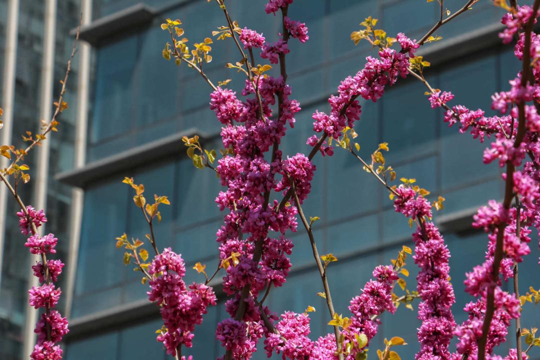 Canadian red -leaf bauhinia’s flower stalks are relatively long, and the flowers are relatively sparse. Unlike ordinary bauhinia, they are clustered and open on the trunk.
