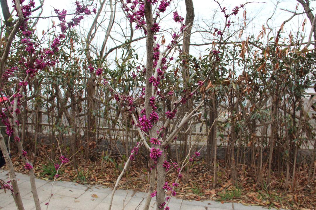 After the flowers, the 4 to 10 clusters generate short general inflorescences. The old dry, new branches, and short branches can be flower, corolla butterfly, rose red, flowering in April.