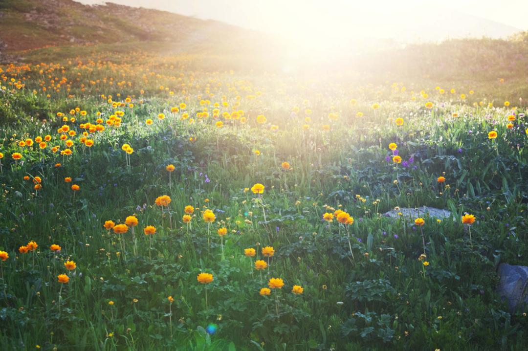 Flowers are single, flower stems are long; sepals 5, yellow, width and ovate; petal spoon linear.