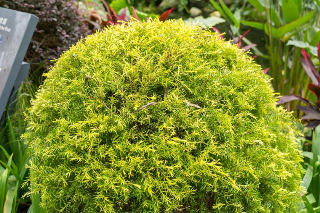 The ground skin is rounded. Looking at it from a distance, the ground skin is like an erected egg. The ground skin has a cake -like leaf, densely clustered, and it will also bloom red brown flowers, but there is no value of viewing. In fact, the most beautiful ground skin is its itself. Most of the land skin is light green, and it will become red in autumn. Of course, the ground skin also has yellow -green plants. Planting a single tree, sturdy, green; and planting a large piece, green refreshing, red romance, nature, so beautiful! Intersection