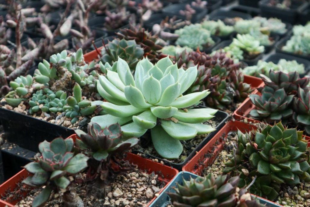 Various succulents, rose, lily …