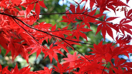 The leaves of red maple have been red from spring, and they will always be red until autumn, and it will wither in winter; and the leaves of another plant chicken feet are green in spring, and the summer is the same as spring. It will become red until autumn. Winter will also wither.