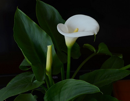 The white palm is a short roots, and sometimes the stems will become thicker and lignified. The leaves are relatively long, with oval -oriented lanceolate. The ends of the blades are relatively pointed. There are obvious leaf veins, and petioles are relatively long. The flowers are upright, the flowers are rolled slightly, the color of the flower is white, and the sarches are columnar.