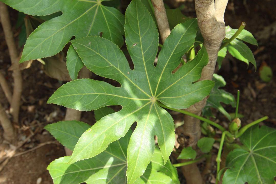 Macular octagonal gold plate, yellow spots on the leaves;
